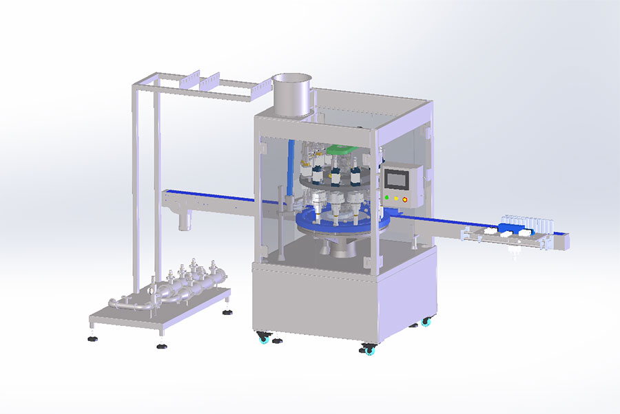 產品描述設備如下圖1: 此產線配置產品有(從前端到后端):回轉式高速上閥機組、離心式高速理閥機、供閥提升機、6工位高精度計量缸&單組增壓泵、6頭封口&6頭充氣一體機(正壓防爆電箱和防爆人機界面)。具有操作簡單,人機交互友好,故障指示等優(yōu)點。便于排查和排除故障。2.各機組完成的生產工藝和性能參數(shù):A.回轉式高速上閥機組如圖2所示 圖2 型號:SG-QGQW25-150HSF回轉式高速上閥機,16工位回轉式高速上閥機汲取國外先進設備技術研發(fā)而成,機組由閥門提升機,轉盤式離心理閥機(此設備根據(jù)閥門形式非標定制)和高速回轉上閥機構成。工作原理為一個送閥軌道...